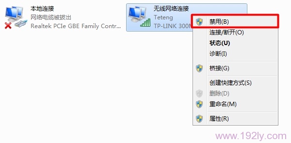 禁用:无线网络连接