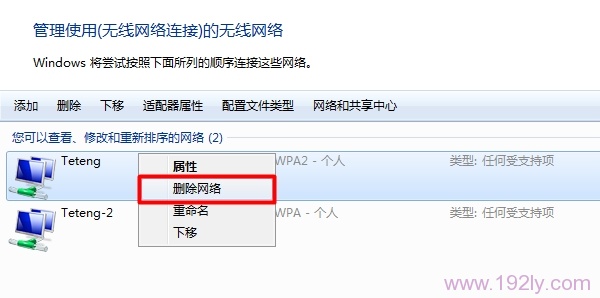 删除保存的无线网络配置