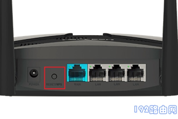 (1)水星幻影路由器d126的复位键位于电源接口旁,该键下方标有英文单词:RESET/WPS,具体位置可参照下图。