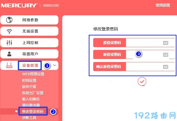 答:使用当前的登录密码登录至melogin.cn管理页面;接着找到并点击“修改管理员密码”的选项,即可更改melogin.cn页面的登录密码,具体操作可参照下图。若不清楚如何进入melogin.cn管理页面,可以查看下方推荐的文章: