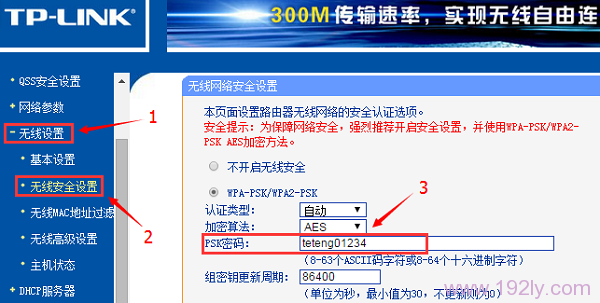 可通过登录无线路由器管理页面,在“无线设置”——>“无线安全设置”中检查“PSK密码”,此密码即为WiFi密码。