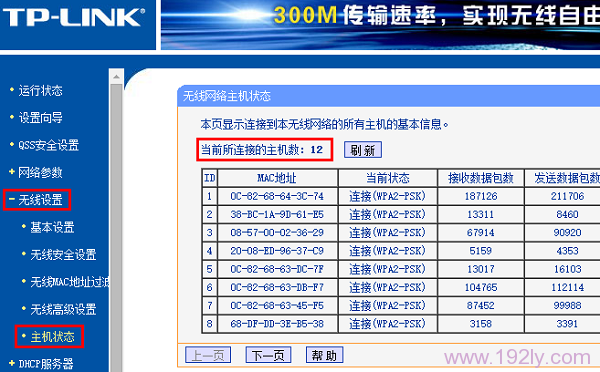可以通过访问无线路由器管理界面,在“无线设置”——>“主机状态”中查看当前连接设备的状态。