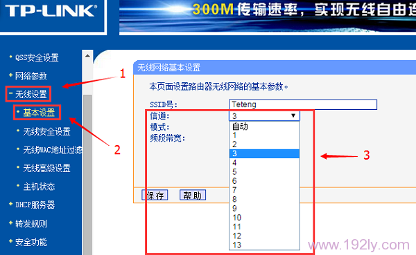 进入无线路由器设置界面,在“无线设置”——>“基本设置”中手动调整“信道”的数值,可选范围为1至13,推荐选用1、3、6、9之一。