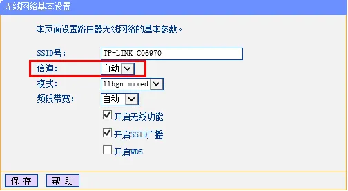 2、更改TP-Link无线路由器的无线信道以避免与邻近的无线路由器产生强烈的信号干扰:登录到TP-Link路由器的管理界面后,依次点击“无线设置”——“基本设置”,在右侧的“信道”选项中进行调整。