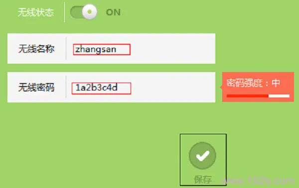 2、设定“无线名称”和“无线密码”,完成后点击“保存”。详情如下图所示。