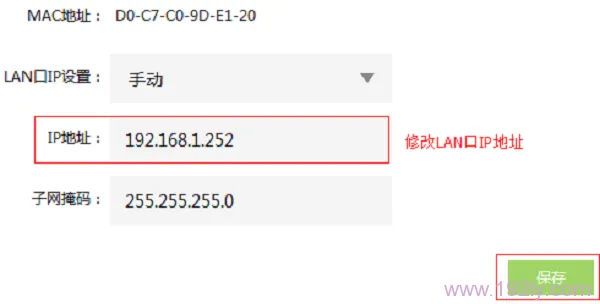 将“LAN口IP设置”设为手动模式