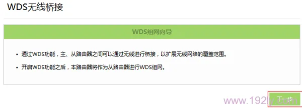 (1)在“WDS无线桥接”页面直接点击“下一步”按钮。