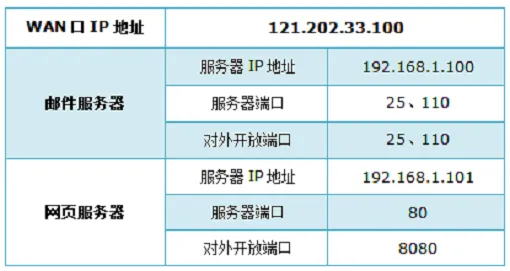 按照上述配置,互联网中的客户端利用邮件客户端软件访问121.202.33.100(WAN口IP地址),即可成功连接到邮件服务器。通过浏览器访问网页服务器的方式如下:
