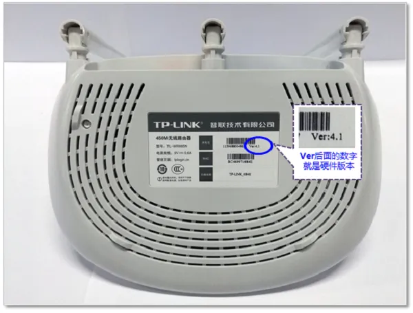 如果你不确定自己所拥有的TP-Link TL-WR885N路由器的具体版本,可以在路由器底部的标签上找到答案,其中Ver:后面标注的就是硬件版本,如下图所示。