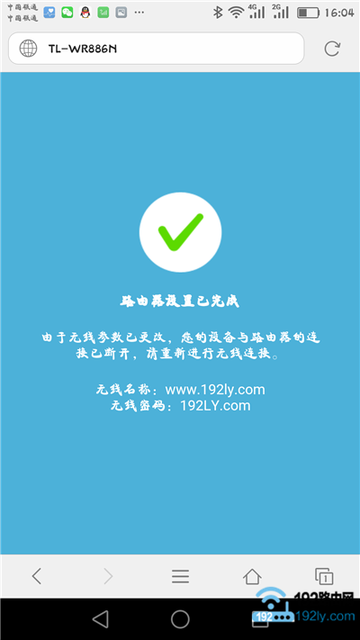 此时,页面会展示上一步设置的无线名称和密码,并提示需重新连接无线信号。