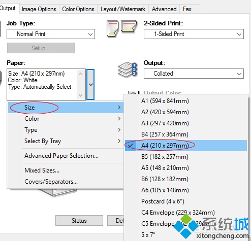 4、有打印机的各种设置,在纸张设置中,如果选择的是letter,那么即使在word中打印选择的是A4纸,打印的时候仍然会提示“纸张不对”,原因在于打印机驱动设置中的纸张设置覆盖了word中选择的纸张尺寸,其优先级要更高一些;