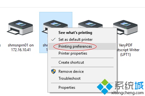 3、在打印机列表中右击使用的打印机设备,可将其设为默认打印机,在右键菜单中打开打印机属性;