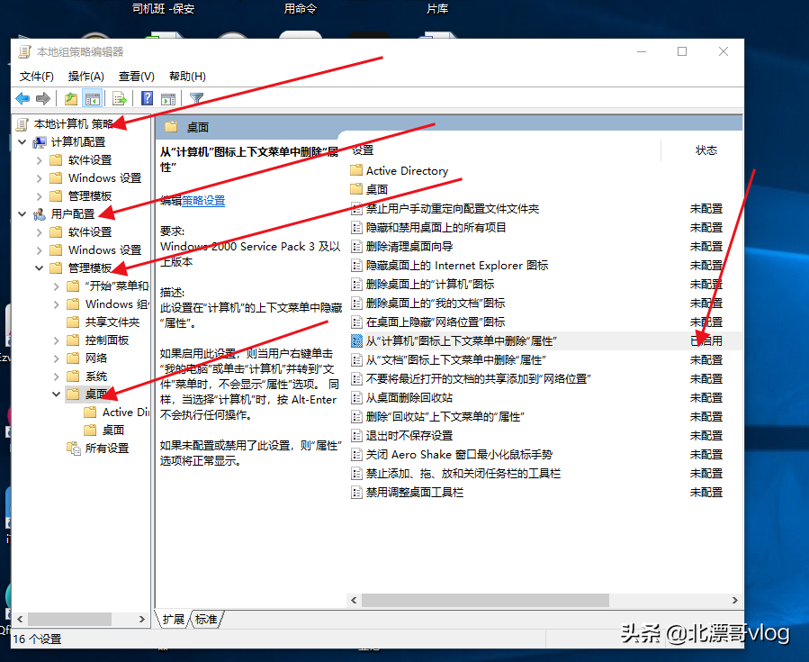 用户配置 – 管理模板,在管理模板中找到桌面,并左键单击:桌面。