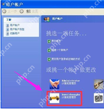 然后通过控制面板进入用户帐户,找到忘记密码的账号,点击进入。