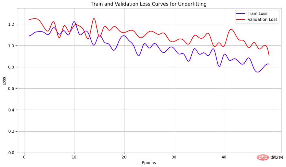 此外,密切关注训练和验证损失曲线有助于检查是否存在过度拟合或欠拟合。过度拟合是一种问题,其中验证损失与训练损失不同并开始增加,表示模型的泛化能力不佳。通常可以通过添加适当的正则化(如权重衰减、drop-out 层)、添加更多数据增强或使用早期停止来解决此问题。另一方面,欠拟合表示模型没有足够的容量来拟合训练数据的情况。这可以通过训练损失下降不够和/或在整个时期内保持或多或少平坦来识别。可以通过向模型添加更多层、减少数据增强或选择不同的模型架构来解决此问题。下图展示了通过损失曲线的过度拟合和欠拟合的示例。