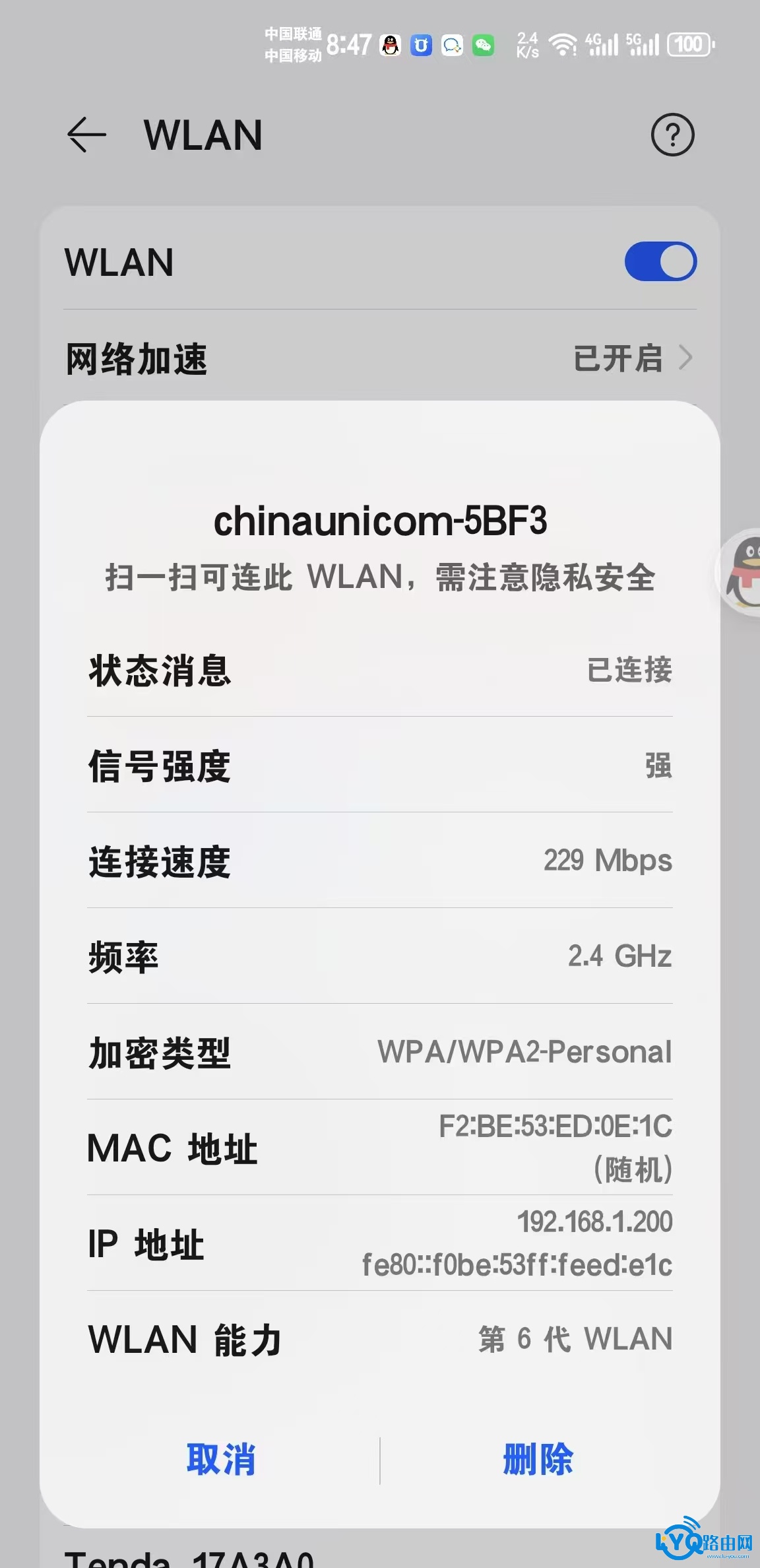 第一步:设备开机,电脑或者手机连接上联通随享C2的WiFi网络,chinaunicom-XXX开头