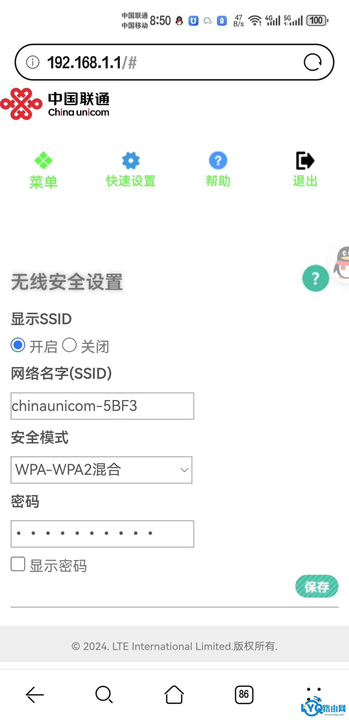 第四步:点击菜单-无线-即可看到修改WiFi名称和密码了,保存后自动重启生效。